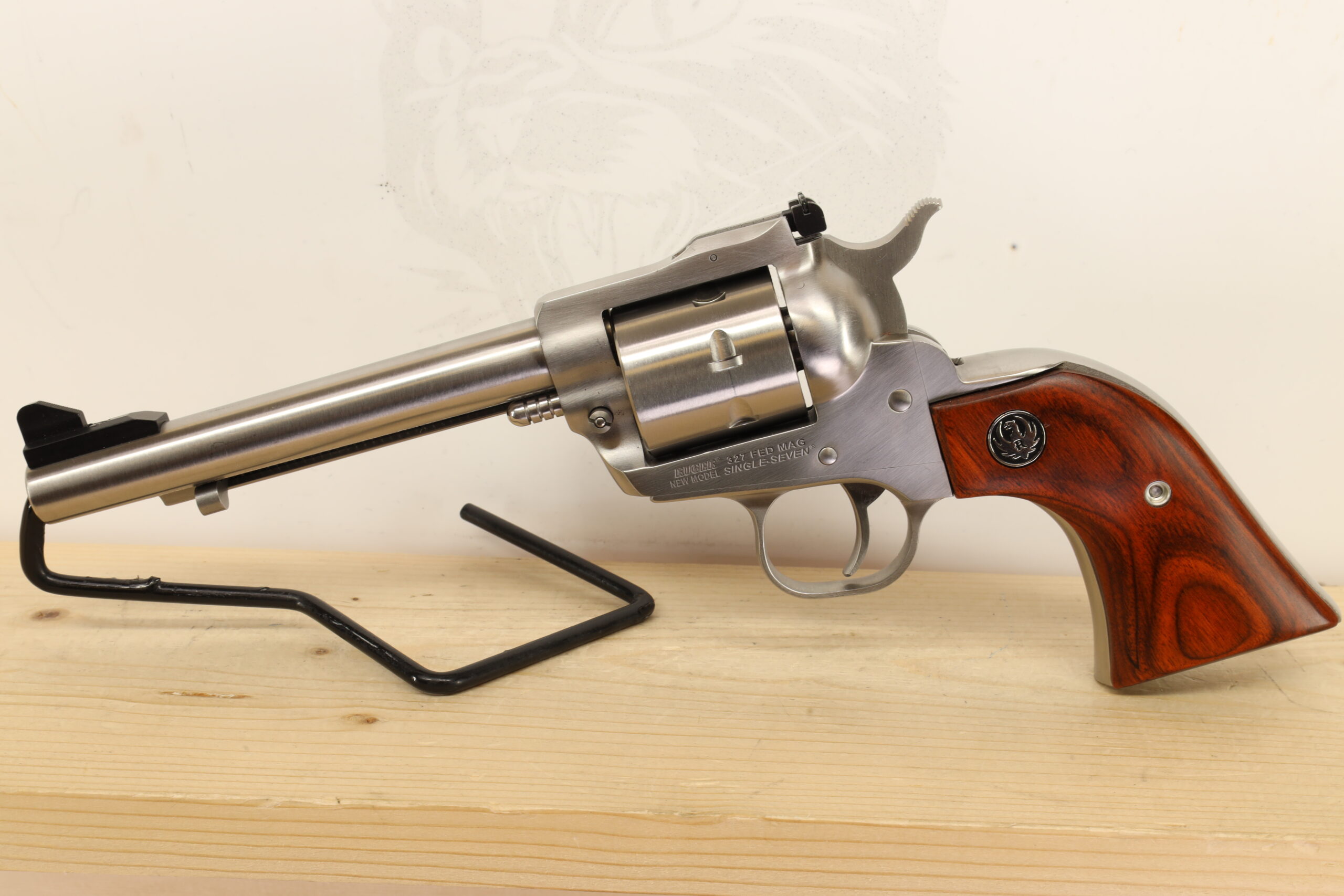The Ruger Single-Seven, a used but well-preserved revolver, fires the robust 327 Federal Magnum from its 7-round cylinder. With a 5.4″ barrel, this handgun demonstrates Ruger’s commitment to innovation, durability, and shooter comfort.