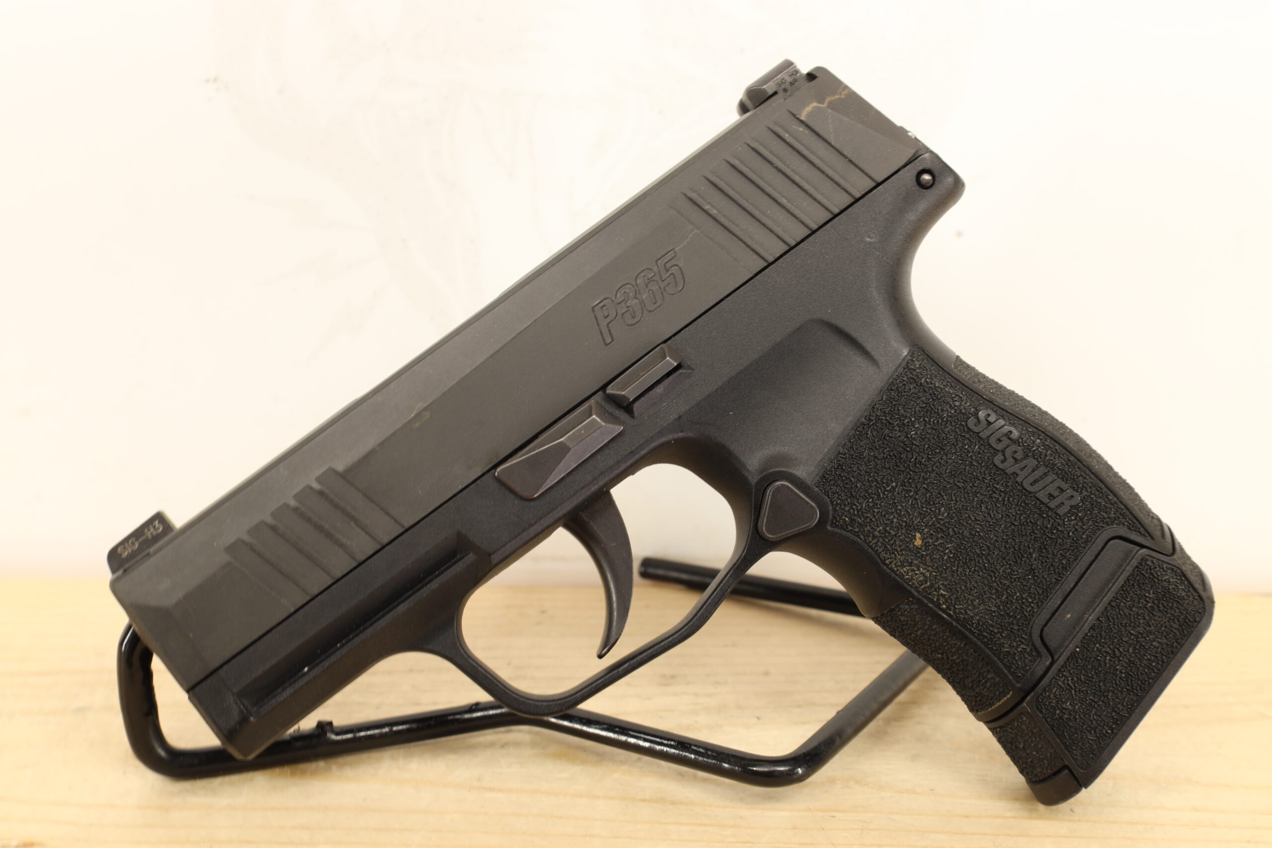 Sig Sauer P365 9x19mm is a compact powerhouse reputed for its versatility. This used firearm, in great condition, features a 3″ barrel and comes with two magazines and a box or a bag.