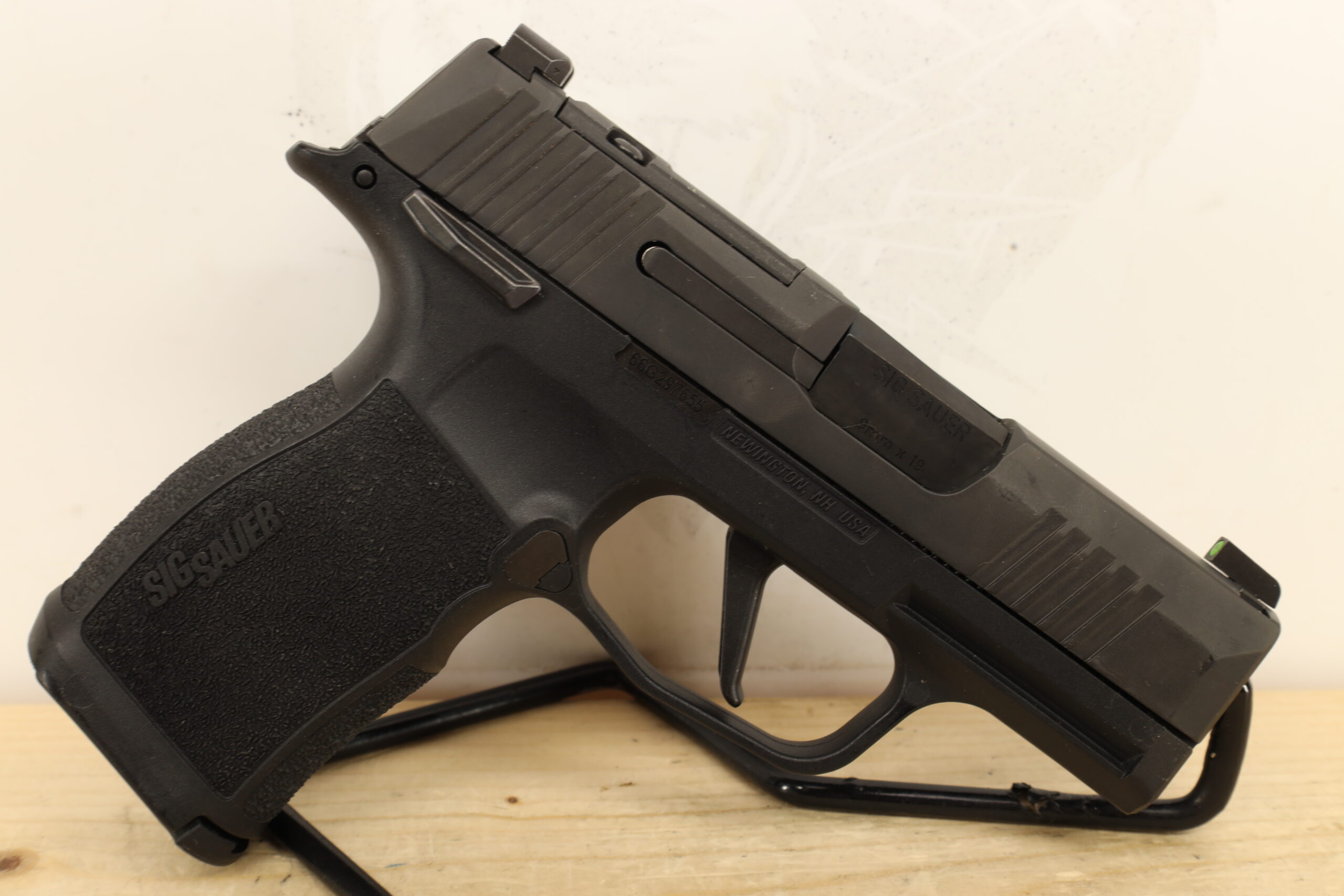 The SIG SAUER P365 X 9x19mm is a compact and highly sought-after firearm, made by SIG SAUER, a company known for their reliable weapons. This particular firearm is in great condition, featuring a 3-inch barrel and comes optic ready. Additionally, it includes a thumb safety and a single magazine, though it lacks the original packaging.