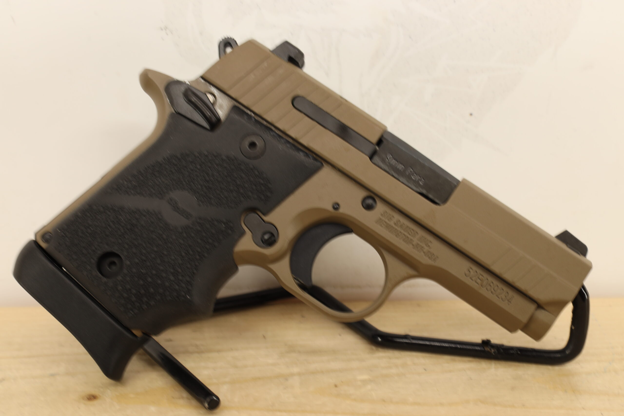 SIG SAUER’s P938 is a compact 9x19mm model that combines the robust power of a full-sized pistol into a subcompact frame. It’s a great choice for those seeking a concealed carry firearm without sacrificing firepower. It comes equipped with a thumb safety and two magazines.