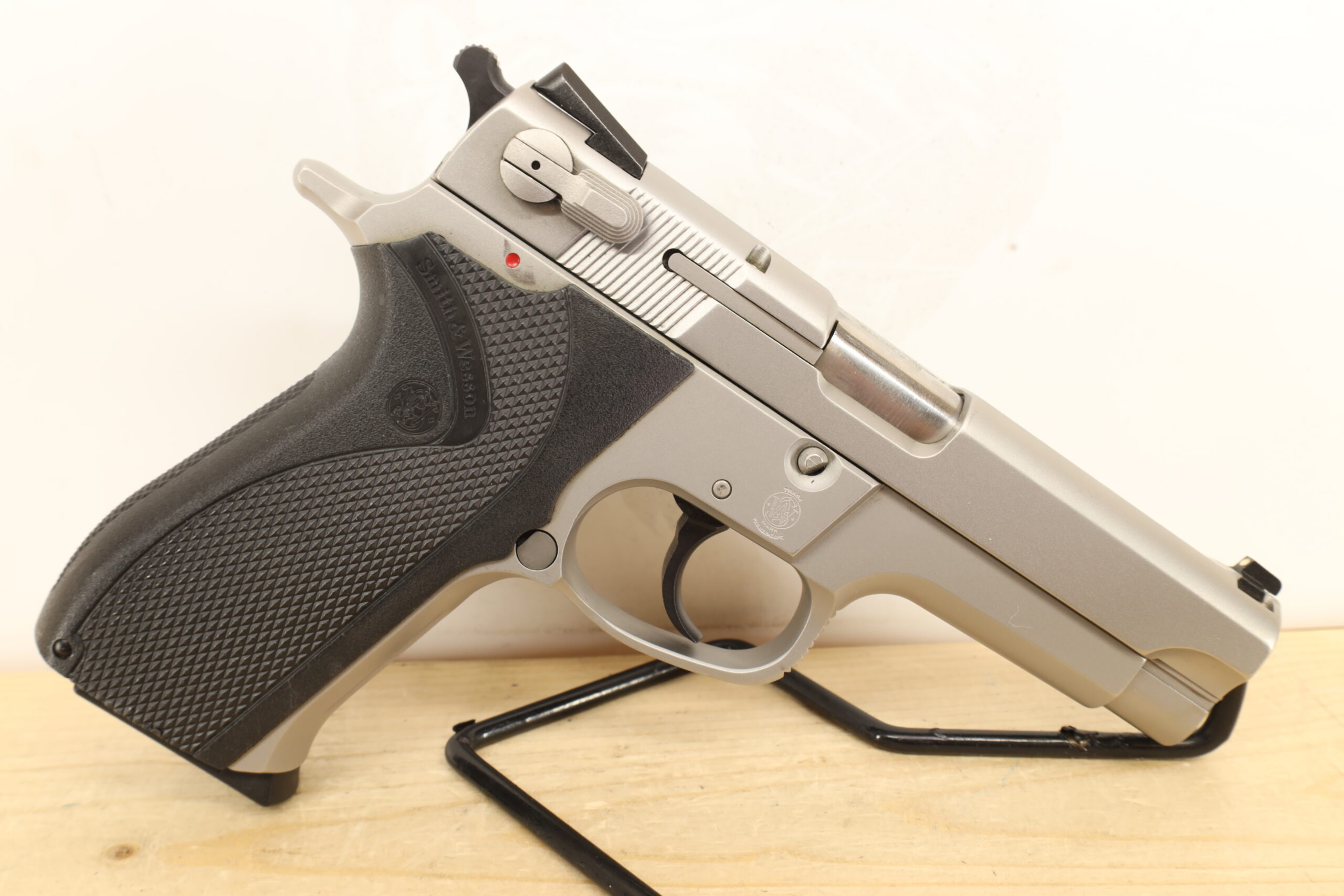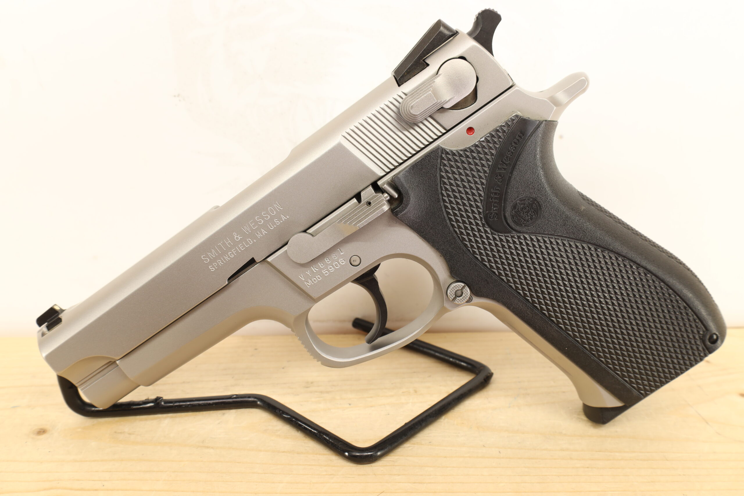 Smith & Wesson 5906 9x19mm, a testament to the renowned brand’s supremacy in pistol craftsmanship. Despite it being in a used state, this fine piece is well maintained, signifying the long-lasting quality of S&W products. It sports a 4″ barrel and includes a thumb safety for secure handling. This 5906 comes with one magazine, highlighting the brand’s focus on giving users excellent firing capacity.