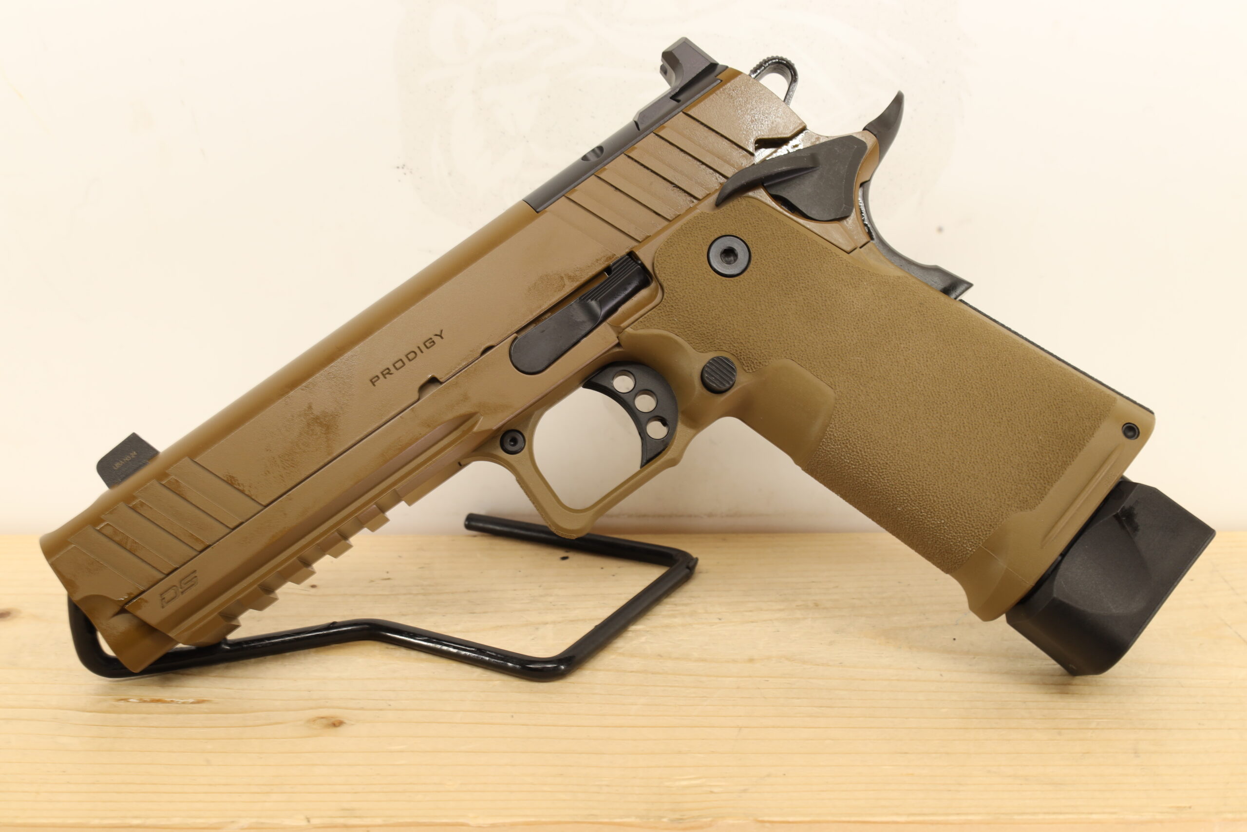 The SPRINGFIELD ARMORY 1911 DS Prodigy AOS Comp 9x19mm takes the legendary prowess of the 1911 series to modern heights. New from manufacture, it features a 5″ barrel, is optic ready, and includes a grip safety and thumb safety for added handling confidence. With a pair of magazines and either a box or bag for convenient storage and carry, this Springfield Armory entrant is a testament to the enduring appeal and versatility of the 1911 line.