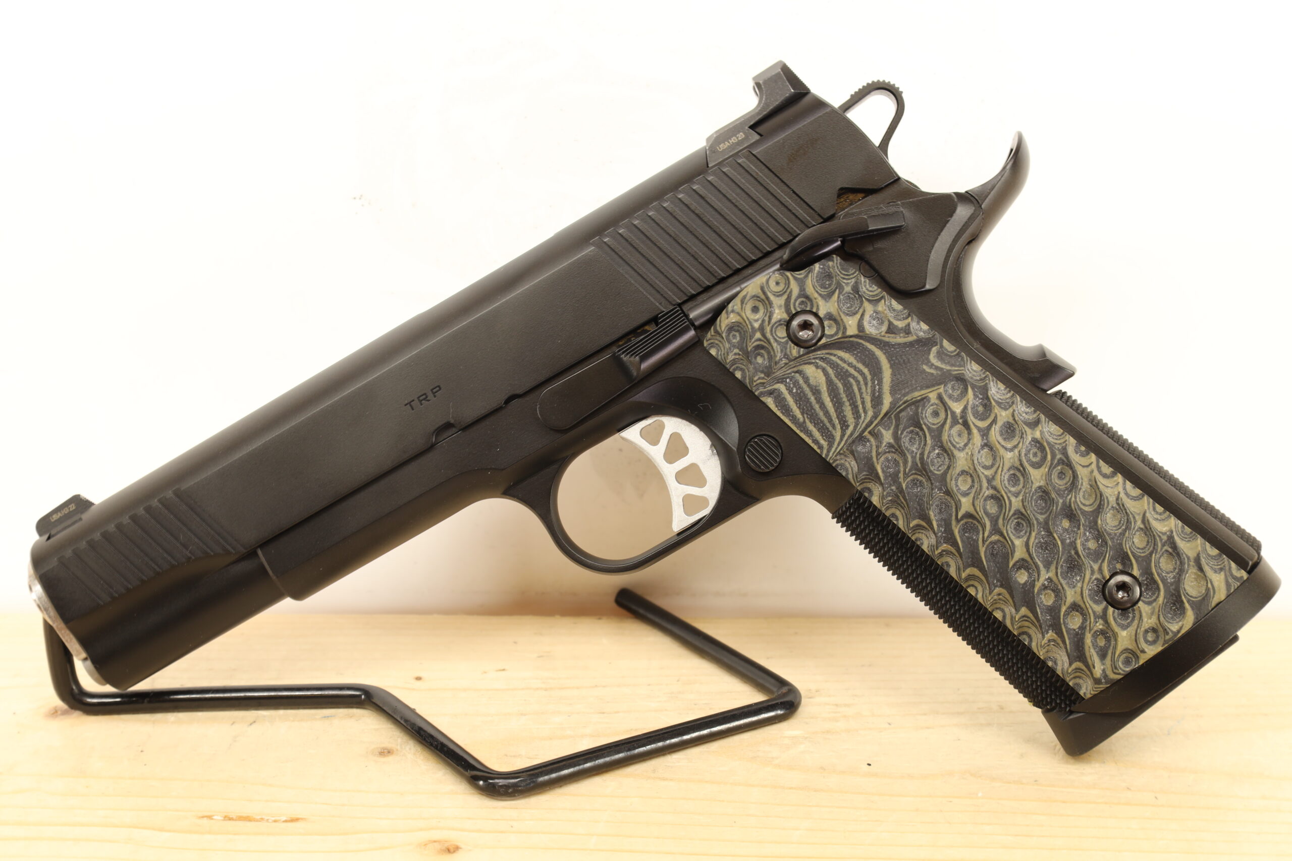 SPRINGFIELD ARMORY 1911 TRP 45ACP holds its own as a semi-automatic pistol featuring a 5″ barrel designed for accuracy and precision. This model includes grip safety and thumb safety mechanisms, emphasizing user safety alongside performance. Its great condition signifies the top-tier durability expected from Springfield Armory 1911 firearms.
