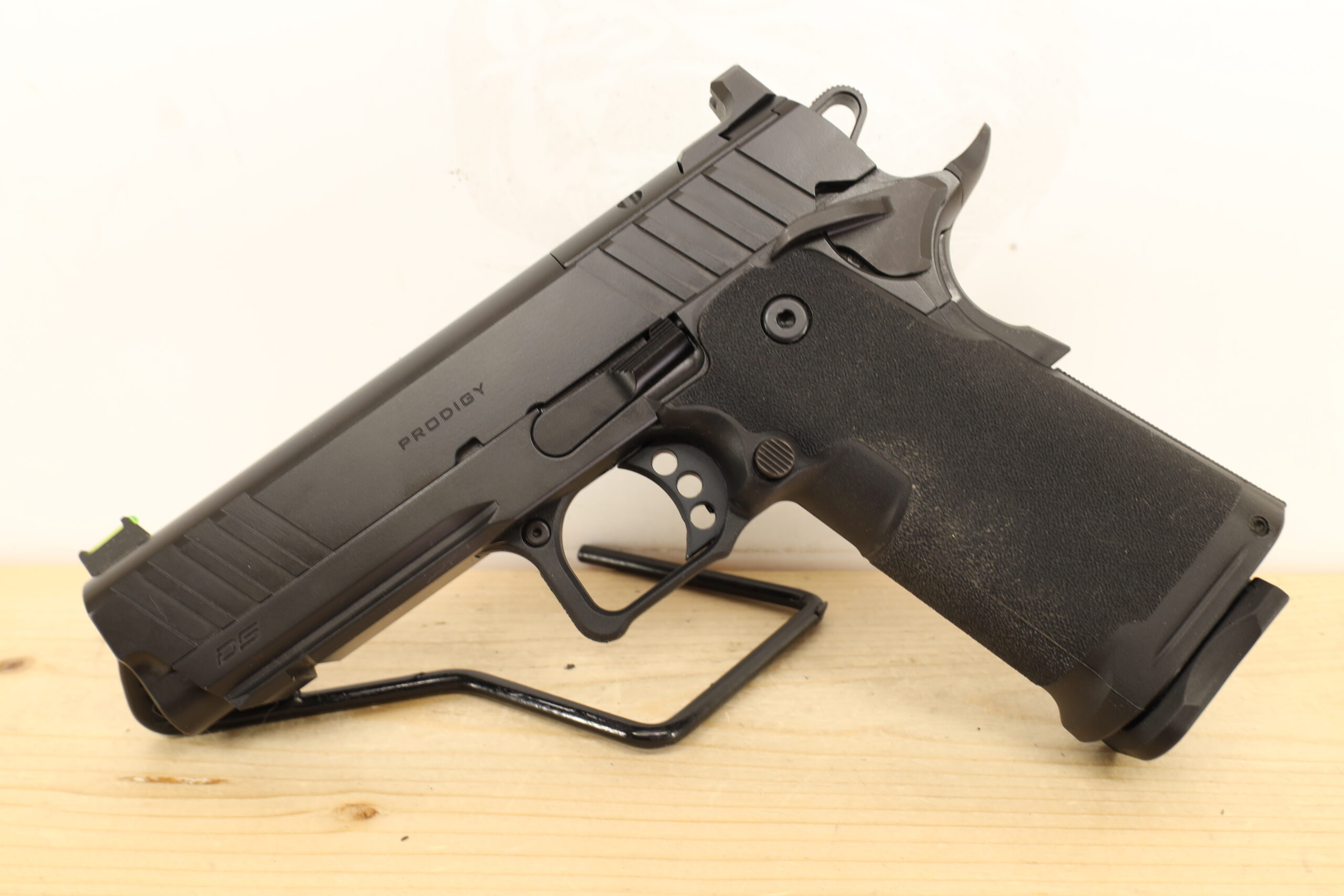 The Springfield Armory Prodigy is a 9x19mm semi-automatic pistol streamlined for usability and performance. Despite being pre-owned, the Prodigy maintains great quality, featuring a 4″ barrel and being optic-ready for personalized customization. This handgun provides dual safety with the grip and thumb levers and still retains its three original magazines, although it comes without the original box.