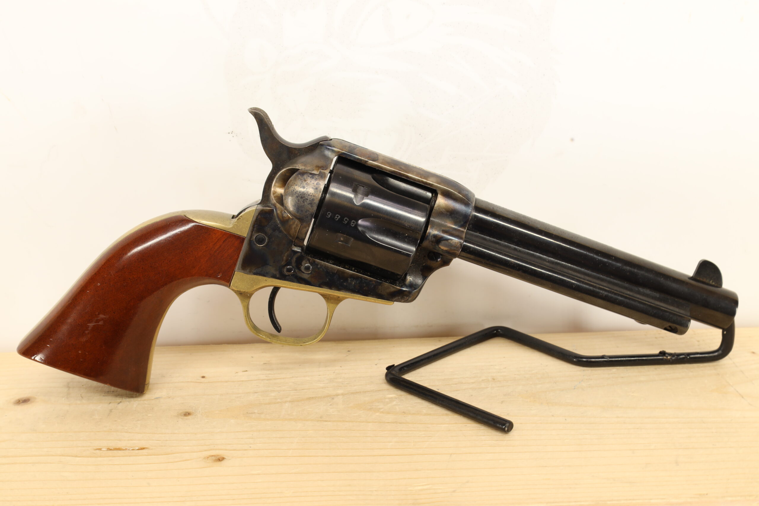 The Uberti 1873, chambered in the classic 45 Long Colt, pays homage to the spirit of the Old West with its traditional six-shoot design and mid-sized 5.4″ barrel. Though it doesn’t come with the original box, this revolver is in great condition and perfect for those seeking a slice of history.
